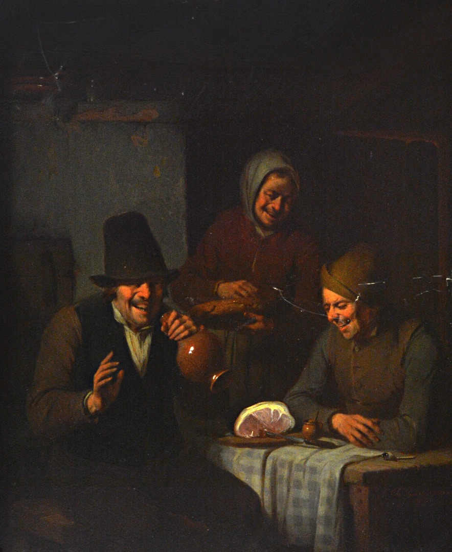 Laughing figures in a tavern