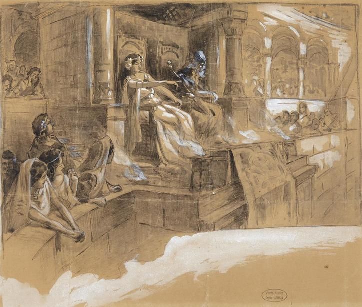 | Graphite ink and watercolour wash en grisaille heightened with white | |