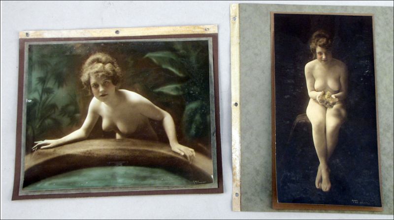 TWO HAND COLORED SILVER PRINTS OF NUDE MAIDENS