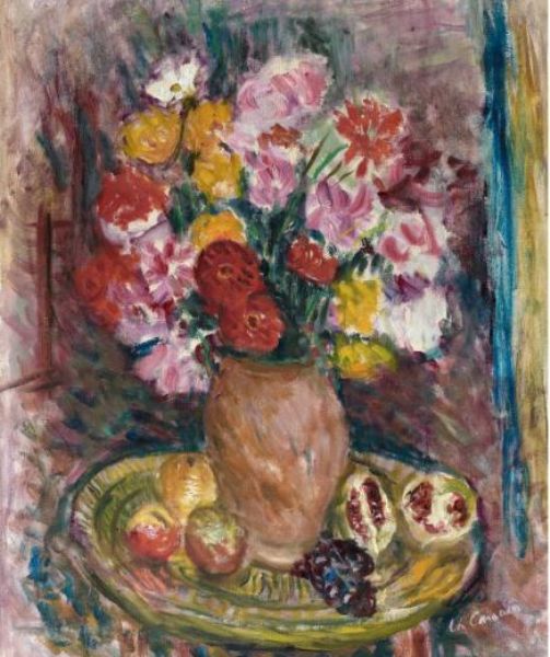 NATURE MORTE AU VASE DE FLEURS ET AUX FRUITS