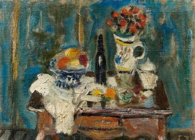 NATURE MORTE AU VASE ET COUPE DE FRUITS