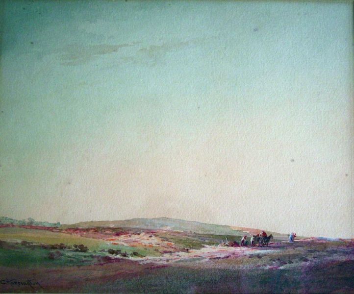 HORSE AND CART WITH FIGURES ON A HEATH