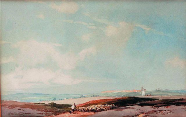 | shepherd and his flock on the downs, probably in Sussex | |