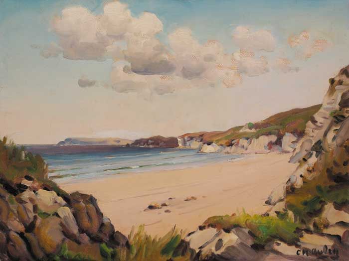 VIEW ACROSS A STRAND TOWARDS LOW CLIFFS