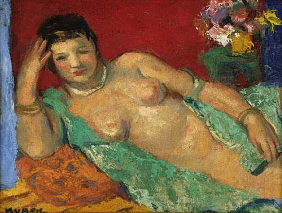 Nu accoudé au drap vert