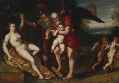 | Chronos, the God of Time, cutting the wings of Cupid in the presence of Venus and Mars | |