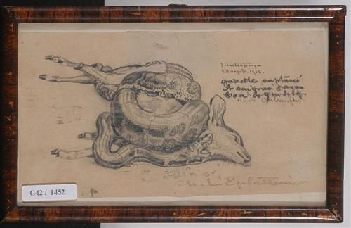 Study of a boa eating a gazelle