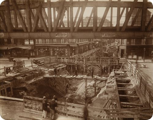 | Construction du chemin de fer métropolitain municipal de Paris, c. 1900. | |