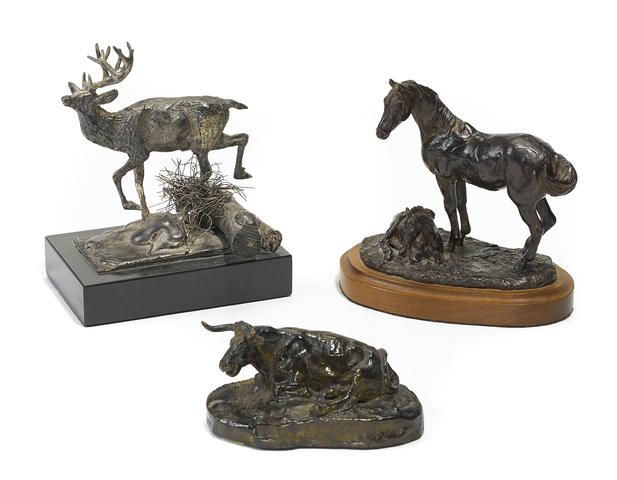 A buck bounding over a log; A mare and her foal; The Texas steer (Group of 3)