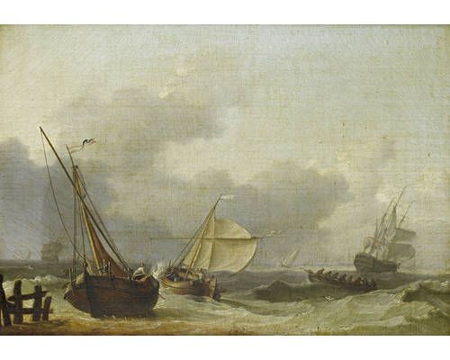 | A squall off the Dutch coast, with small craft and a man-o'war running for shelter | |