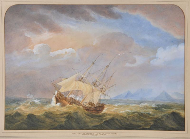 East Indiaman outward bound from Cape Town, with Table Mountain beyond