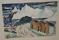 Icelandic Headland with Boat Houses