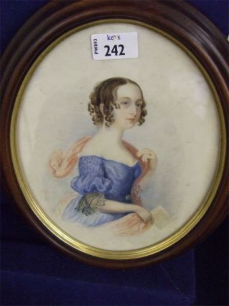 | A half length Portrait of a Pretty Victorian Lady in a blue dress with pink chiffon scarf | |