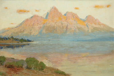 The Grand Tetons, Evening. From Jackson's Lake