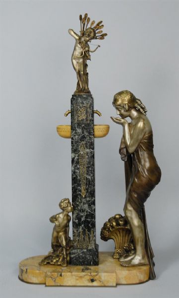NYMPH AND CUPID STANDING BEFORE A FOUNTAIN