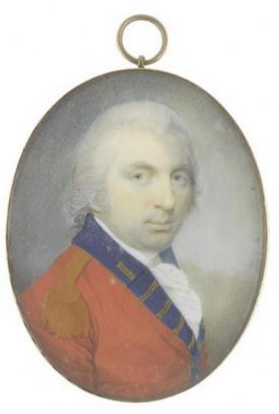 | An Officer of a Royal Regiment of Infantry, wearing scarlet coat with blue facings and collar, gold epaulette, white frilled che | |