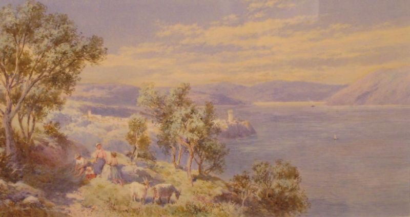 | Figures resting by a Path, an Italian Coastal Town beyond | |