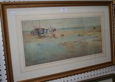Coastal Landscape with Figures and Carts unloading the Catch from a Beached Boat