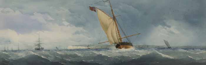 | A PAIR OF WATERCOLOURS ON PAPER OF CHANNEL SHIPPING, DEPICTING CROSS-CHANNEL PADDLE STEAM FERRIES AND SAILING VESSELS | |