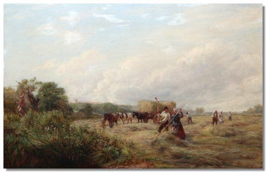 Haymaking, figures in a landscape