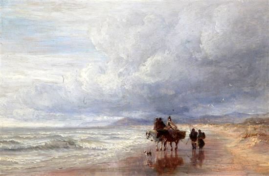 Seaweed gatherers along the shore