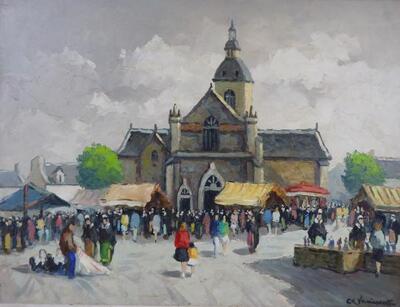 | Eglise Saint Sauveur et marché à Onain (Côte du Nord) | |