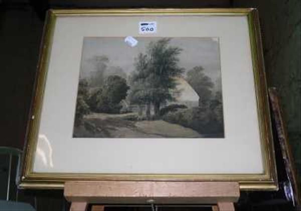 Cottage in a woodland landscape