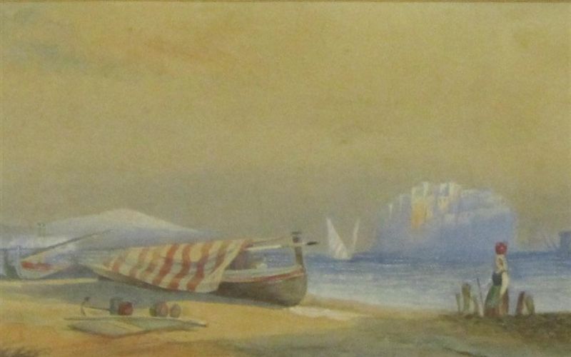A Neapolitan coastal Landscape with a Figure on a Shore near beached fishing Boats