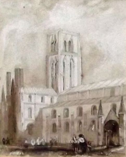 Figures before a Church