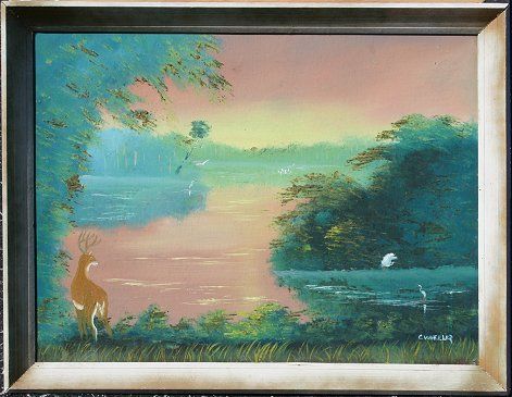 Florida Highwayman Sunrise Scene with Deer and Egrets