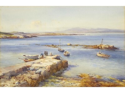 FISHERMEN AND THEIR BOATS AT A JETTY