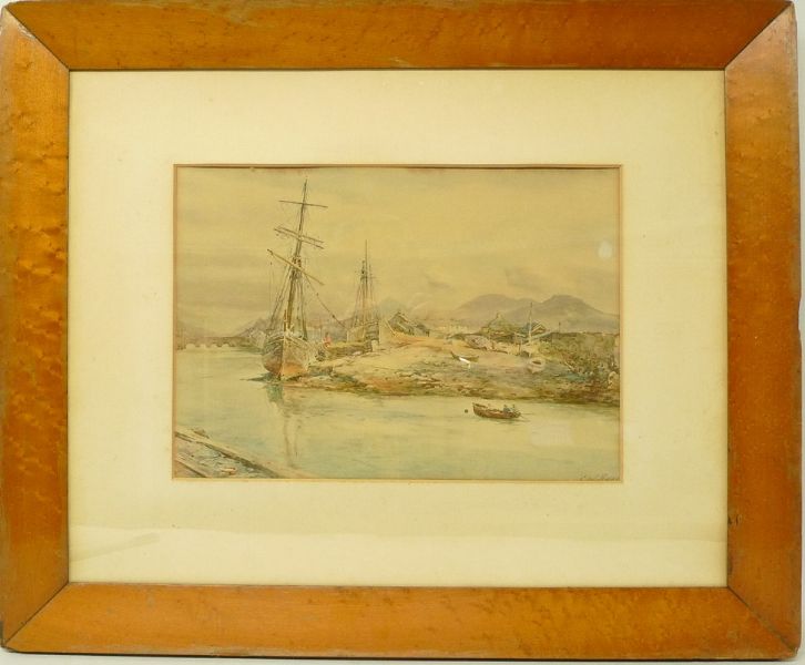 | Port Madoc, an estuary scene with fishing boats to the fore | |