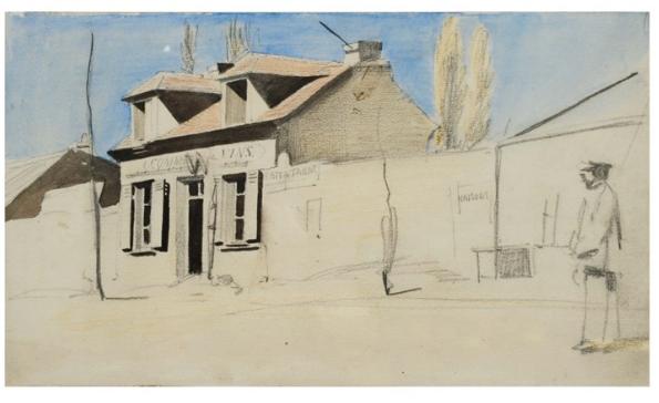 | A man wearing a peaked cap standing near a wine merchant shop | |
