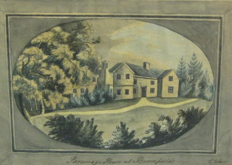 Parsonage House, Bromfield, Shropshire, with old inscription on mount¦Parsonage House at Bromfield