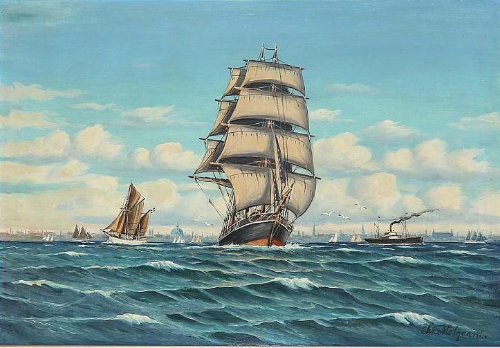 Seascape with sailing wessels off the coast of Copenhagen.