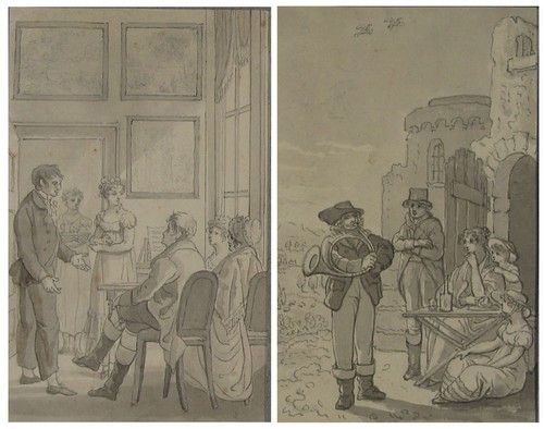 | Drawing pen and grey ink, grey wash, grey framing lines, 2 items | |