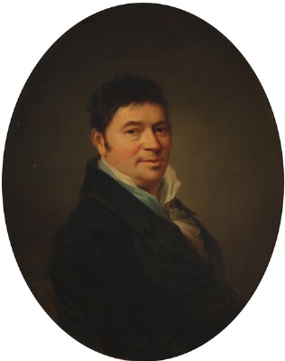 | Portrait of a gentleman in a dark overcoat, blue waistcoat and a white cravat | |