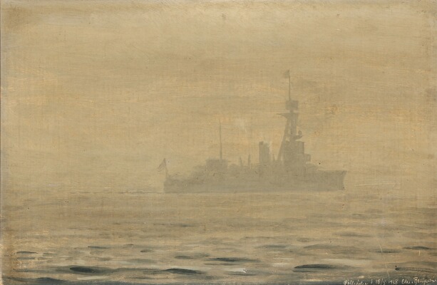 | Seascape with the war ship, Niels Juel, in the fog | |