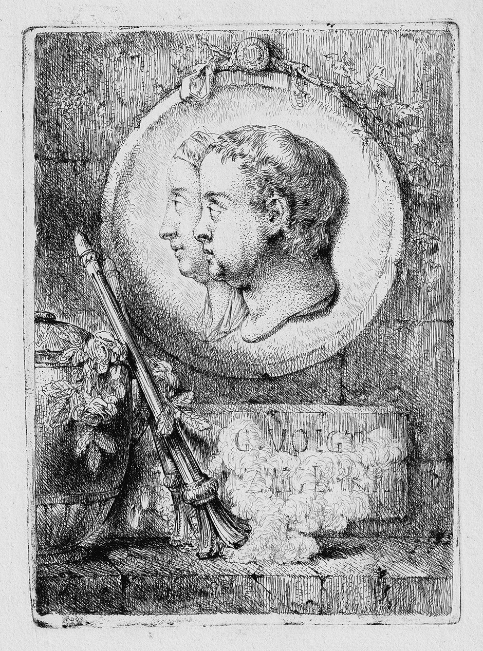 | Monument für G. Voigt mit einem Doppelportrait im Profil in einem Medaillon | |
