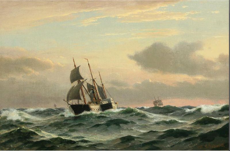 Steamer on open sea