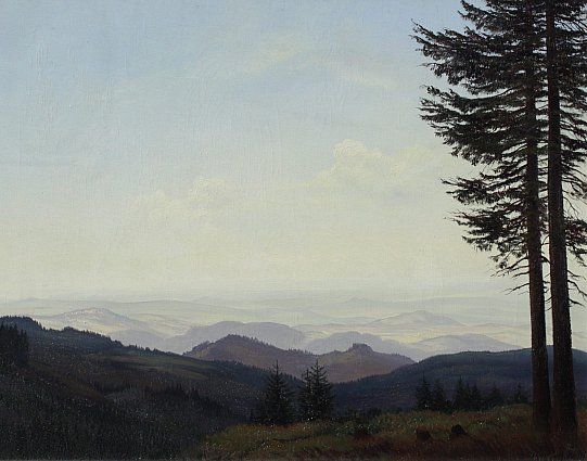 | Panoramic Landscape with Plateau Tops and Village in the Distance, from the Standing Pines | |