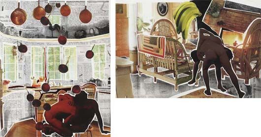 | Two works: (i) Pots and Pans, Plots and Plans; (ii) Bananas, quilt, fireplace and a volcanic background, 2003 | |