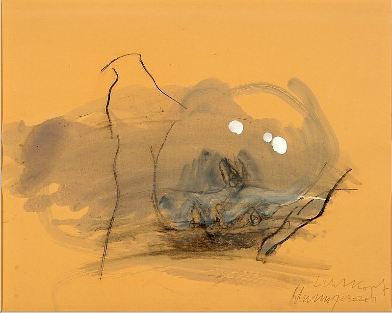 Watercolor drawing charcoal and gouache on paper