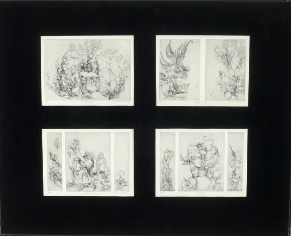 | Vier surrealistische Motive - #Melencolia II#, #Hommage á Dürer#, #Vernichtung# und #Das Pferd# | |