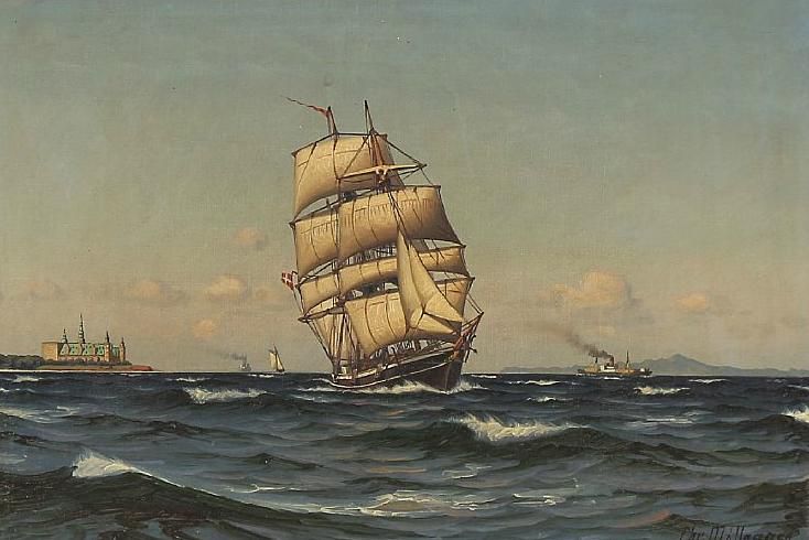 | Seascape with a sailing ship and Kronborg Castle in the background | |