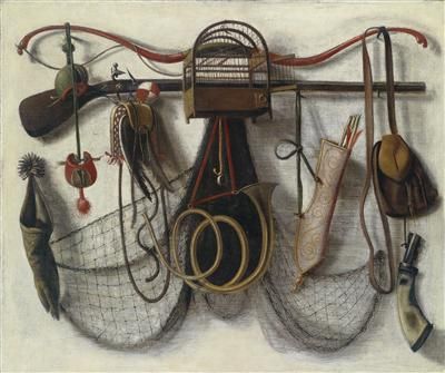 A trompe-l'oeil still life of hunting utensils