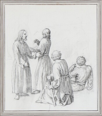 “Kristus i Gethsemane”. Christ in Gethsemane. 1846–47. Unsigned. Drawing ink, wash and pencil on paper. Sheet size 193×168 mm. | |
