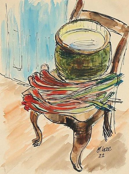 Interior with chair and rhubarbs