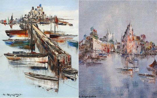 2 Piece lot includes (1) Ships In Harbor and (2)La Corse