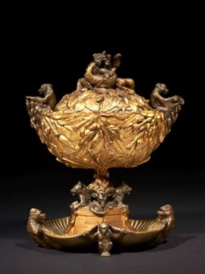 | Grand porte-cigares, tombeau à Jean Nicot, à décor d'ours, de singes, et de feuilles et fleurs de tabac | |